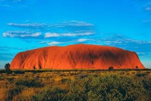 世界遺産エアーズロック(ウルル)は、高さ約350m、全長約3,400mの一枚岩。周囲は約9.4km。