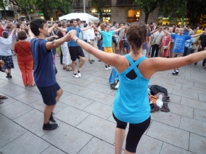 カタルーニャ地方の伝統舞踊、サルダーナ。手をつないで輪になり、音楽に合わせて踊ります。フランコ独裁政権の時代にはカタルーニアの民族意識を煽るとしてカタルーニア語使用と共に禁止されていました。現在も日曜午前にカテドラル前で踊られています。カタルーニャの人々にとって、サルダーナは民族のシンボルになっています。