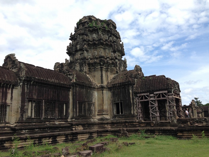 12世紀初期、アンコール王朝のスーリヤヴァルマン2世によりヒンドゥー教寺院として建設されました。なんと、建設には30年以上の年月を費やしています。東西に1,500m、南北に1,300m、幅が190mもある堀によって囲まれた寺院です。建物の多くは1970年代の内戦中に損傷を受けましたが、修理がなされ、1992年には世界遺産にも登録されました。