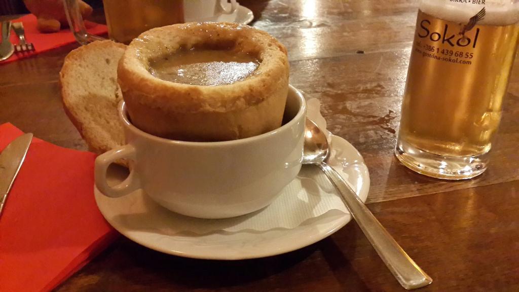 メニューは伝統的なスロベニア料理が用意されています。特に人気なのは「キノコのスープ」です!パンの中にキノコのスープが入っており一度食べたら病みつきです!