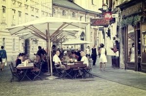ソコルはリュブリャナ城へのケーブルカー乗り場から徒歩数分の所に位置しています。ガイドブックにもよく載っている人気のレストランです。毎日多くのお客さんで賑わいランチやディナータイムには満席になることもしばしば。