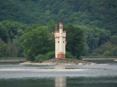 ゴツゴツとした岩場にネズミ棟は立っています。この新ゴシック様式の塔は13世紀にマインツ大司教によって通行税関窓口として建てられました。「ネズミの塔」の名前の由来はドイツ語の税関、マウト(Maut)から来ています。(ドイツ語でネズミ=Maus)