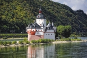 バイエルンのカウプ(Kaub)近くのライン川の中州の上流側立つプファルツ城はルートヴィヒ4世によって1327年に建てられ、1866年に至まで税関所として務めました。1813年から1814年にかけての冬、このプファルツ城はヨーロッパ史上でも重要な場所となります。ナポレオン戦争へと続く解放戦争さなか、プロイセン陸軍元帥ブリュッヘルは6万の兵とともにこの城の前で勝利を収めたのです。この歴史的事件の詳しい詳細はライン河博物館で展示されています。他にも承認からの税金徴収の様子なども知る事ができる大変興味深い博物館です。