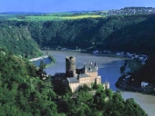リューデスハイムからコブレンツまでの約65kmのライン川の渓谷の両岸に中世から在り続ける古いお城が約30近くも建っています。この情景は世界でも大変珍しくユネスコ・世界遺産にも指定されているほどです。川面近くに立つお城は大変ロマンチックで、ドレスに身を纏ったお姫様が今でもテラスに出てきそうであったり、いきり立つ岩山の霧中に浮かぶように立つお城は不気味であったり、この表情豊かなライン川の古城の数々は、船や電車などで巡る事ができますが、船から望むの方法が最も美しく、また合理的と言えます。(様々な会社がクルーズツアーを提供しています。)