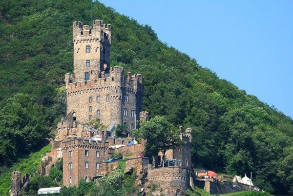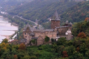 マンスハウゼンの対岸のいきり立つ岩山に堂々と力強く、且つ優雅に立つロマンチックなラインシュタイン城の起源は10世紀とされていますが明確な資料はありません。14世紀初頭にはプロイセンのフリードリッヒ王子の夏の居城として改築され、このお城は数あるお城の中でも重要な建造物とされており、ライン川渓谷の素晴らしい見どころの1つでもあります。ネオ·ゴシック様式のこのお城では砲塔やテラスの鉄階段が見られます。城内も見応え満載で貴重なステンドグラスや壁画、ルネサンス様式の暖炉、貴重な家具があります。