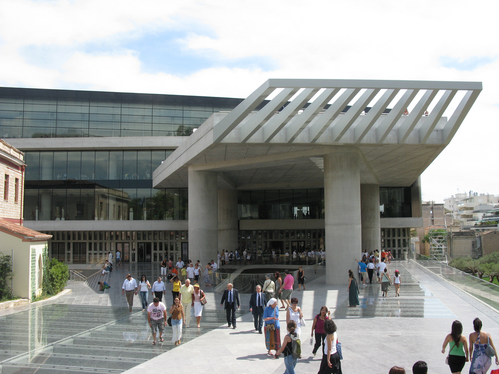 丘の上で観た壮大な風景を胸に、次はアクロポリス博物館へ。パルテノン神殿の破風の一部やエレクティオンの少女の姿をした柱のオリジナル、アテナ・ニケ神殿の東側フリーズなど、アクロポリス遺跡からの出土品の多くが展示されています。