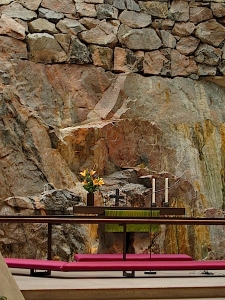 1969年にスオマライネン兄弟の設計により、大岩を掘り下げて作られた世界でも大変珍しいフィンランド福音ルター派の教会。この教会は円形状で、屋根には大きな青銅のドームを乗せ、壁は掘り出したままの岩をむき出しにしています。壁上部にはガラス窓がたっぷりとはめ込まれており、自然光が美しく差し込み、幻想的で神聖な世界を演出しています。また、岩壁は音響効果に大変優れており、コンサート場としても頻繁に使用されます。