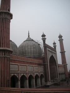 赤砂岩と白大理石のコントラストがとても美しいインド最大のモスクで、中庭に25000人収容可能。 1656年にムガル帝国第5代皇帝シャー・ジャハーンが14年の歳月をかけて完成させた。 門前はお土産屋や屋台が並びんでにぎわっている。また金曜日には集団礼拝の場になる。