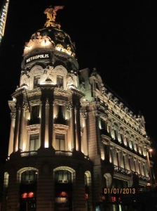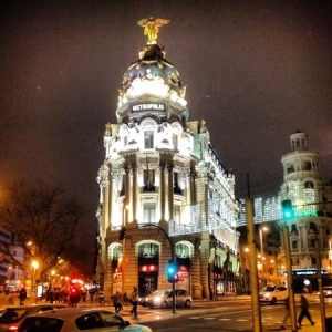 マドリードのメインストリート”Gran Via”とアルカラ通りにつながる交差点の角にあります。真っ白な壁が特徴で、美しい彫刻が施された大変綺麗なビル。メトロポリス保険会社所有です。頂上のドームには女神ニケの彫像で飾られており、まるで人々を見守っているかのよう。元々は別の保険会社のビルとして1911年にフランス人建築家・Jules Févrierによって建てられました。その後何度か改装工事を行っていますが100年を過ぎた今でも綺麗な姿を見ることができます。メトロポリスビルはマドリードのランドーマーク的存在として今もなお愛されています。