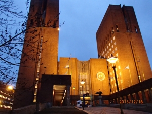 カールヨハン通りを徒歩でナショナルシアターの方向へ戻ると、ひと際目を引く市庁舎に到着します。市庁舎の中はまるで美術館。必見ですよ!