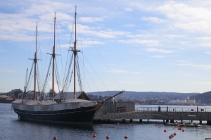 ヴィーゲラン彫刻公園から20番バスに乗ります。Olav Kyrres plassで30番バスに乗り継いで、そこから7分程度でヴァイキング船博物館まで向かいます。