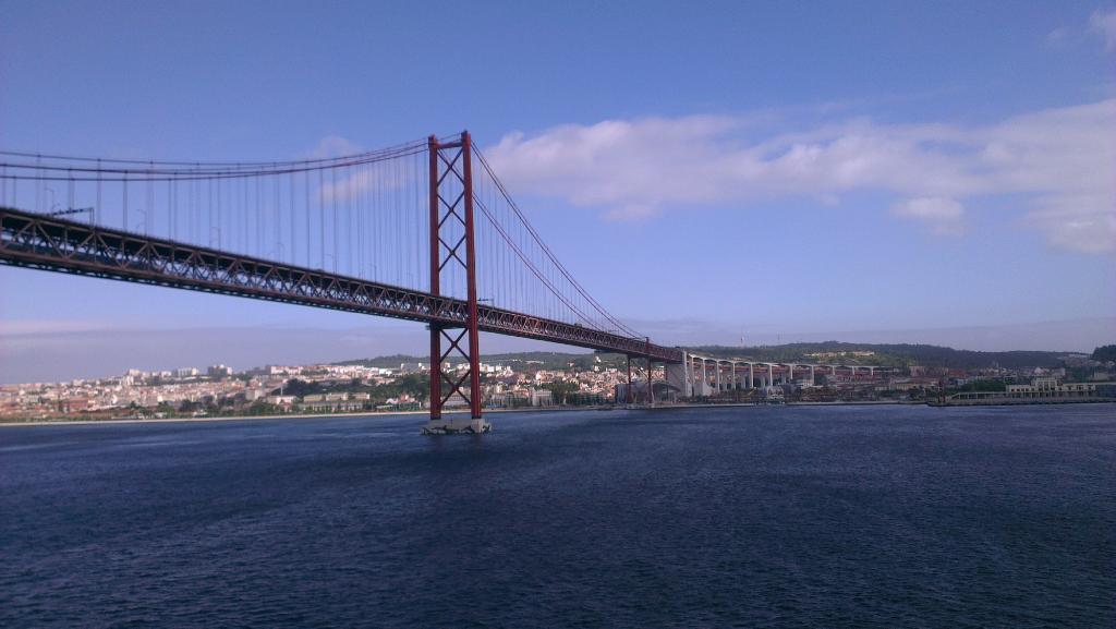 長さは2,277 mで、上段が6車線の道路、下段が複線の鉄道となっています。橋の長さはヨーロッパで1番の長さを誇っています。現在は私鉄のFertagusとCPのアルファ・ペンドゥラールおよびIC(インテル・シダーデス)が通過し、道路部は南側はアルマダでA2に接続し、リスボン側ではA5及び南北線を介してA1、A8と接続しています。