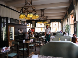 キュビズム建築「黒い聖母の家」の中にある家具、照明、食器など全てがキュビズムに囲まれたカフェはここにしかありません!アート好きには正に神的な場所でしょう。またそうでない人にもその美しさを楽しめる素晴らしいカフェです。お茶だけでなくクロワッサン等の朝食メニューやサラダ、サンドイッチ等の軽食が食べられます。(コーヒー48Kč、カプチーノ65Kč、ケーキ各種40〜98Kč、サンドイッチ各種95〜140Kč)キュボズムアートにどっぷり浸ってみませんか?【編集・ライター】 まつはしゆか