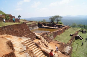 シギリヤはスリランカの中部州のマータレーにある有名な遺跡です。シギリヤの遺跡は、5世紀にカッサパ1世によって建造された、要塞化した岩上の王宮跡と、それを取り囲む水路、庭園、貯蔵施設などの都市遺構からなっています。岩山の中腹には『シギリヤ・レディ』として知られるフレスコの女性像が描かれており、当初は500体とも言われていましたが風化が進み現在は18体だけが残っています。