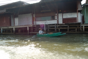 水路脇には民家が立ち並び、殆どの家屋が舟を所有しています。この家屋で商品、すなわち食料品や果実を用意し、そのまま舟で水路を移動、お客の集まる市場まで向かいます。