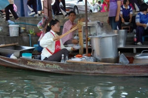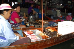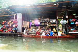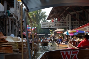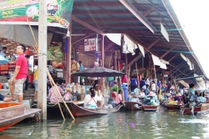 市場が最も活況を呈するのは朝の8時から10時頃までの早い時間帯であり、地元の人と観光客で水路は船が渋滞するほど込み合います。