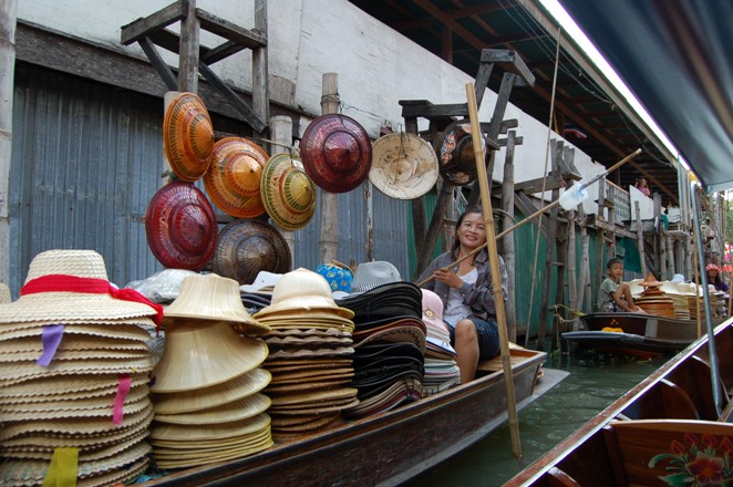 ダムヌンサドアク水上マーケットはバンコクから南西へ約80キロ、ラーチャブリ県に位置します。車で約1時間半ほどの距離でそのまま南下するとフアヒンへ向かうことができます。途中、道路の左右には塩田が広がり、道路脇ではこの塩田で摂れた塩が販売されています。