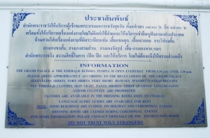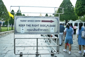 王宮内に入るには服装のチェックがあり、男性、女性を問わず肌を大きく露出した衣服では入れません。(無料の貸服あり)王宮に出かける際には衣類だけでなく、靴類にも注意しましよう。