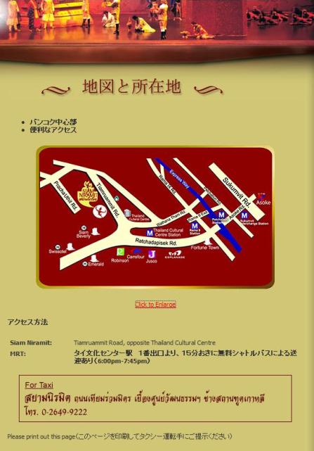 サイアムニラミットはラチャダー地区、MRTタイランドカルチャーセンター駅の近くにあるテーマパークです。開場は夕方5時からで、園内にはタイの「北部」、「東北部」、「中部」、「南部」の村が再現され、当時の人々の暮らしぶりを垣間見ることができます。タイ古典舞踊、象の餌付け、タイ古式マッサージコーナーもありお子様からお年寄りまでご一緒に楽しむことができます。700人収容可能なレストラン「Siam Sawadsee3」ではタイ料理メインのディナービュッフェを頂くことができ、20時からは最新技術を駆使した特殊効果による世界最大級の演出、150名以上の出演者500着以上の衣装という豪華絢爛なカルチュラルショーが上演されます。ショーは「タイの歴史を巡る旅」、「三界を巡る旅」、「陽気で楽しいタイの伝統行事を巡る旅」からなる3部構成、約80分のパフォーマンスです。神秘的な古代王国、シャムの国への回帰旅行に出かけましょう。