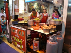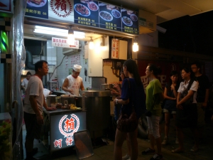 寧夏路夜市は食べ物中心の夜市です。約300m程の直線上にお店が並んでいるこじんまりとした夜市ですが、こちらのグルメを目当てに観光客と地元民で賑わっています。有名店はさらに混んでいて、人気ぶりがうかがえます。