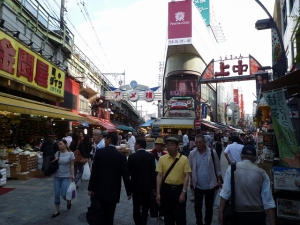 JR上野駅から御徒町駅までの区間に今では貴金属、輸入雑貨、食料品、衣料品、化粧品、ゴルフ用品などと、鮮魚、塩干物、珍味、海苔などを扱う店が入り混じって軒を並べています。良い品を安く買おうと思ったら、根気よく探せば何か掘り出し物を見つけられるスポットです。この区間は迷路のように小さなお店が連なっているので、迷わないように注意しましょう。